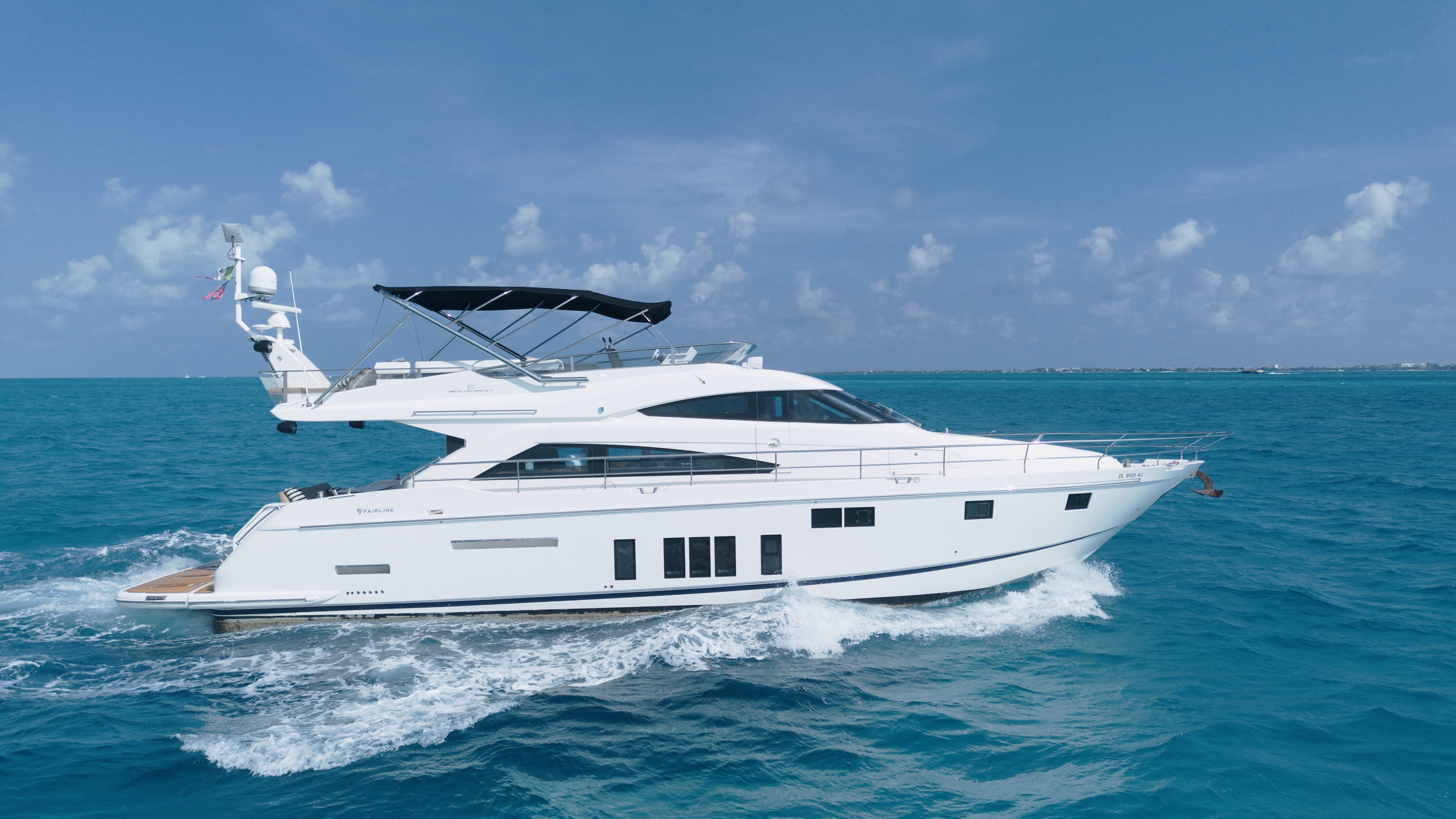 Rent your private yacht! Perfect for enjoying an incredible day around the crystalline turquoise blue water of the Mexican Caribbean. Celebrate your birthday, bachelorette party, family trip or watch the sunset. Live just a fun moment and unforgettable experience at sea. Spend a beautiful and amazing time with family or friends in this luxury yacht, leave your stress and worries away with some peace or get a crazy and fun party on board. Start your trip in the beautiful “Nichúpte” Lagoon aboard a 70-feet Fairline Squadron “Addicted”. The yacht is equipped with solid-surface countertops, handcrafted hardwood cabinets and trim with cherry-wood finishes. The luxurious salon has everything you need for entertaining and fell comfortable, whether it’s a quiet dinner for two or a lavish affair for the whole crowd.